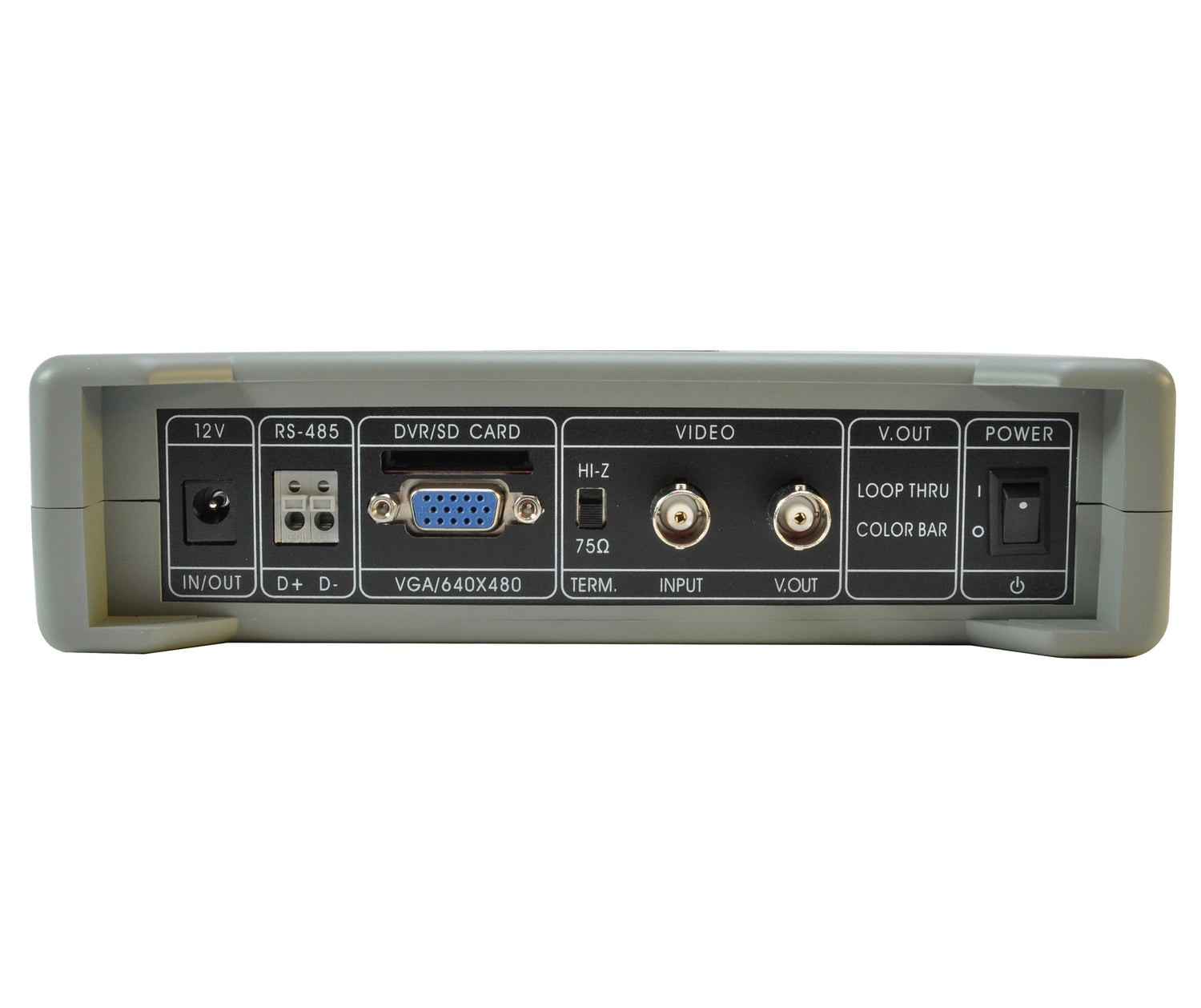 Seasoned agents and techs alike appreciate the mission-driven features of this compact field monitor. Capturing the attention right away is the integrated DVR which makes this a monitor an excellent choice for mobile receiving points. The DVR accepts up to a 32GB SD card for hours of recording at resolutions up to 704 x 480 at 30FPS. During camera installs, the integrated 2200mAh lithium-polymer battery will provide up to 8 hours of operation and has a 500mA/12VDC output for the camera - so no need for extra, bulky battery packs or power supplies. To ensure installed cameras will produce maximum evidence quality, an easy to read dual spectrum video level indicator appears on screen, allowing for instant installation confidence. Another time-saving feature is the RS485 connection points and the onboard thumb-controlled joystick for commanding PTZ units installed in pole cameras and drop cars. The monitor comes complete with a hand-free holster, 8GB SD card, SD card reader, AC power supply/charger, power output cable, video export software, instruction manual, and a one year warranty.